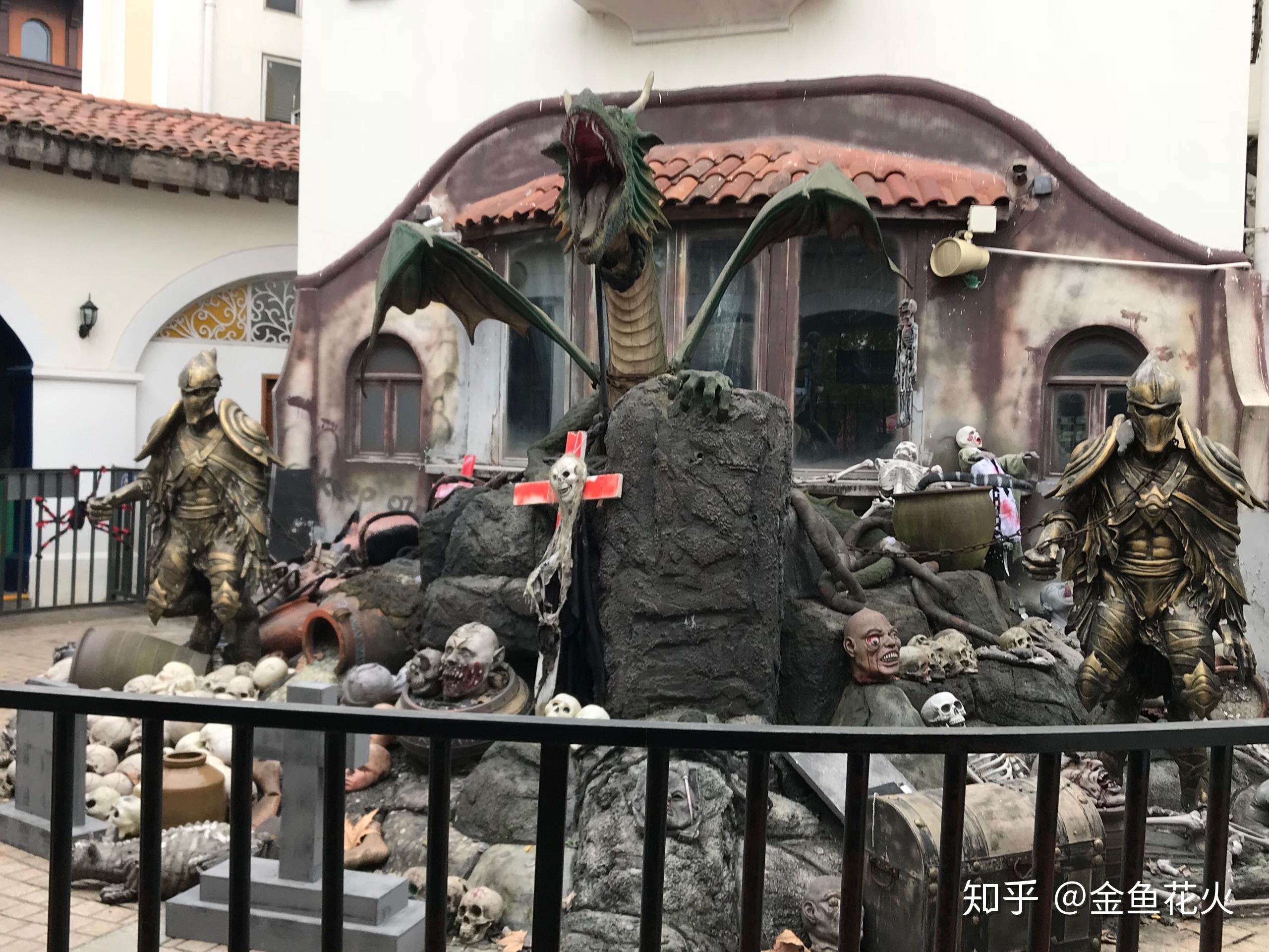 所以后面区域的鬼屋我都没玩,我决定以后也不玩任何鬼屋。看其他攻略说这个鬼屋不可怕,所以胆大的朋友有时间可以去试试哦,欢乐谷园区里有好几个鬼屋。下图是幽灵古堡外的造景: