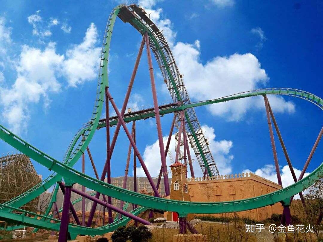 丝路传奇区还有一个刺激的项目是西域飞天,双跌落过山车,最高有50米的落差,垂直于地面,感觉比跳楼机更震撼,男朋友去坐了(我不敢),因为看着太吓人了!更变态的是在跌落下来之前还把你挂在最高点停顿几秒钟,心态都要崩了啊,但是男朋友下来之后说刚才和他一辆列车有个女生说这个没有大漠拉力赛刺激。他很想让我一起尝试一下,但我看着那90度的坡脚发软。硬是不敢上。(下图为西域飞天,图片来自百度)