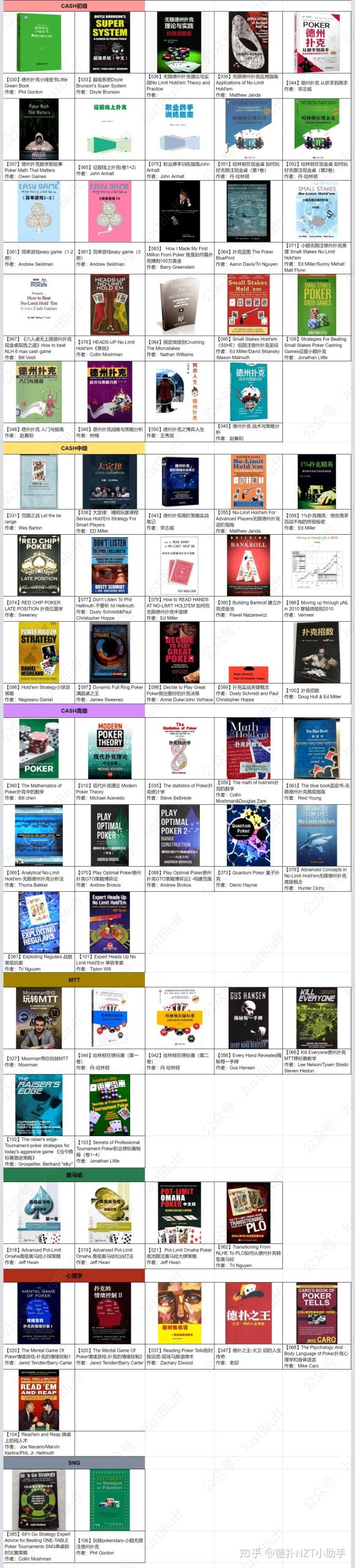 最近把德州扑克相关的经典书籍做了整理,也按照cash、mtt以及初中高级进行了分类和归档
