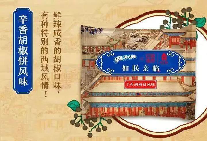 而奥利奥携手故宫打造的宫廷饼干,就在包装、口味等方面进行了创新,辛香胡椒饼等口味更是全新产品,在设计上迎合营销流行趋势「中国风」的同时,将历史故事植入到品牌营销中来,在建立「欢快」营销主题的同时,搭建有趣的场景体现了产品价值,同时强化了品牌形象。