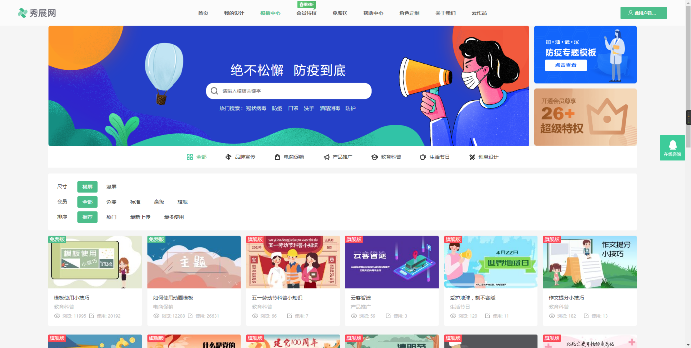 秀展网 – 免费MG动画短视频在线制作平台,H5动画制作