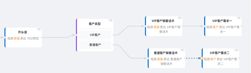 通常情况下,对话节点用于检测客服角色是否表达某些规定话术,没有触发话术检测项可以设置评分减分;或者用于检测业务场景下客户对于客服提出表扬,当触发检测项之后评分加分。
